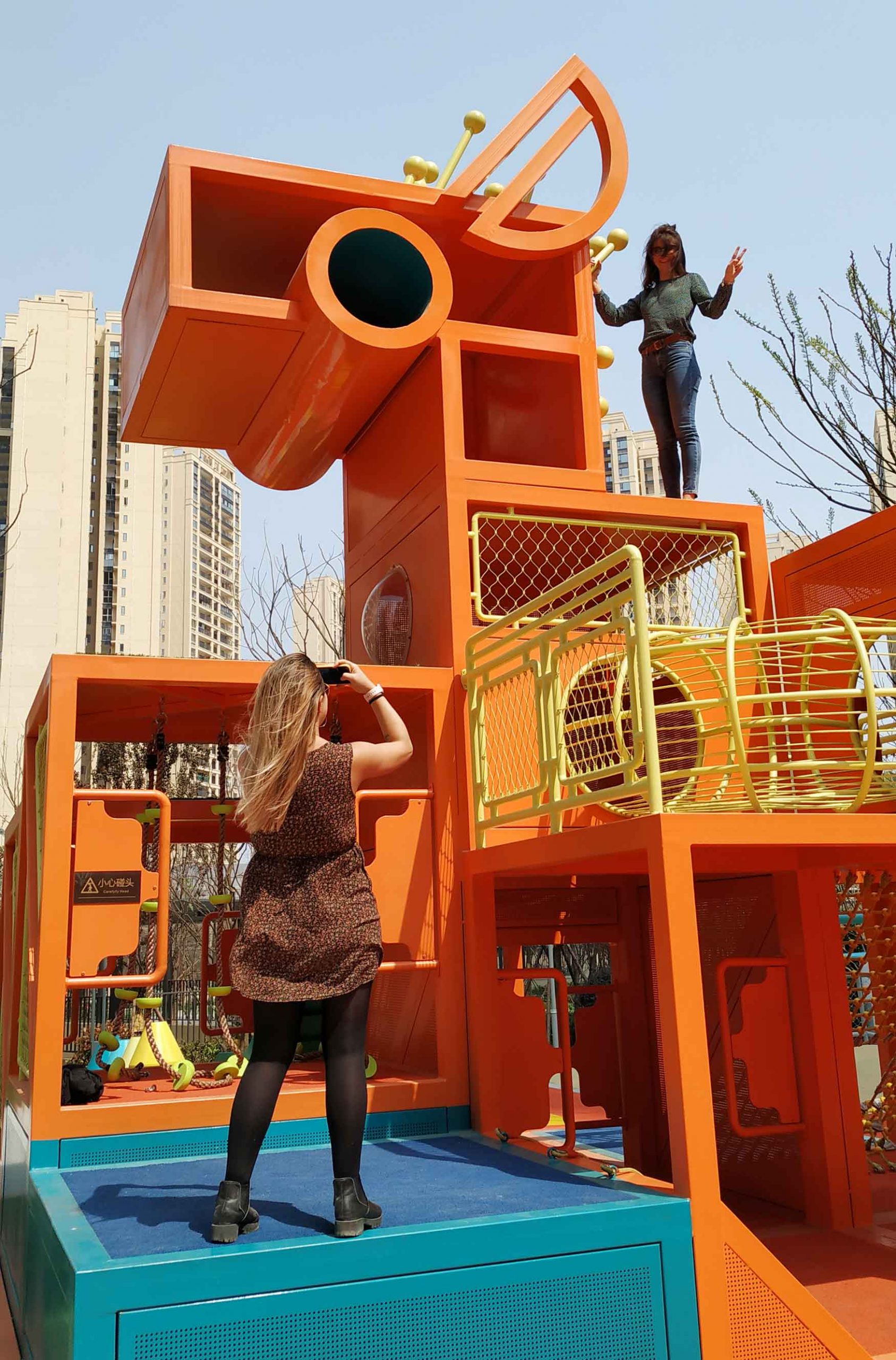 The structures are both playful and monumental, providing kids with fun challenges and adults with vantage points to observe or join the activities.WIRED SCAPE