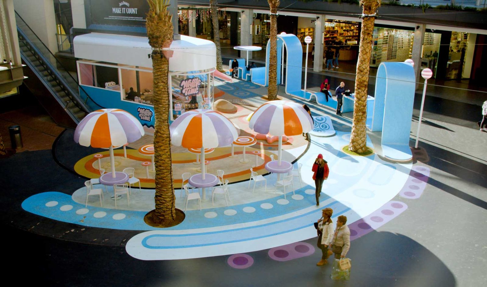 «La Barcelonita» es una intervención estratégica de la icónica esquina y cruce peatonal situado en la calle comercial de Westfield La Maquinista, en Barcelona (España). Inspirándonos en la característica vibra veraniega y los tonos playeros de la famosa playa de La Barceloneta, la llamamos «La Barcelonita», imaginándola como la hermana pequeña de La Barceloneta.