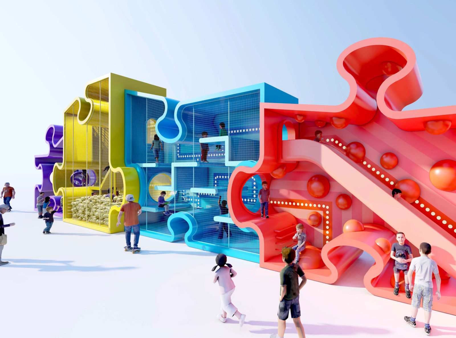 Standing at a maximum height of 8.5 meters, the Puzzle Maze serves as a captivating urban focal point, promoting active play and encouraging social interaction. Customizable in terms of colors, lighting, and details, this project can be tailored to suit the client’s preferences and site conditions, with modifications available upon request.