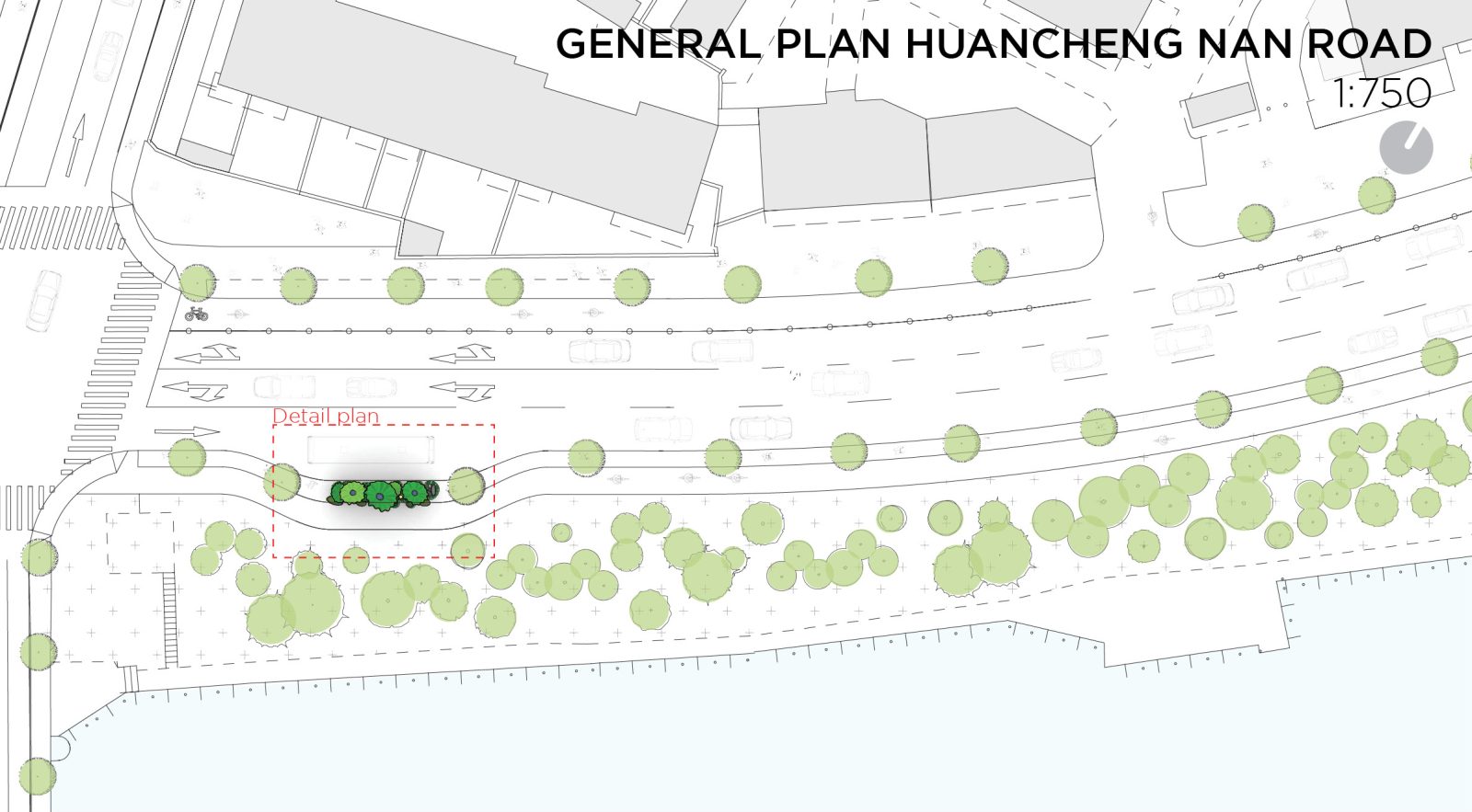 The proposal is located in Huancheng Nan Road, Jiaxing, China. The site is next to the historical Huancheng river which provides of a very interesting balance between natural and urban character since is in direct relation with a park, but at the same time located in a very consolidated urban space.