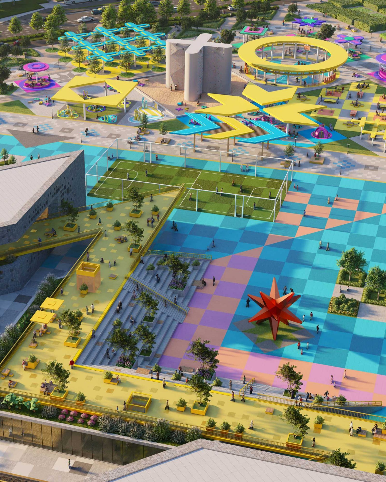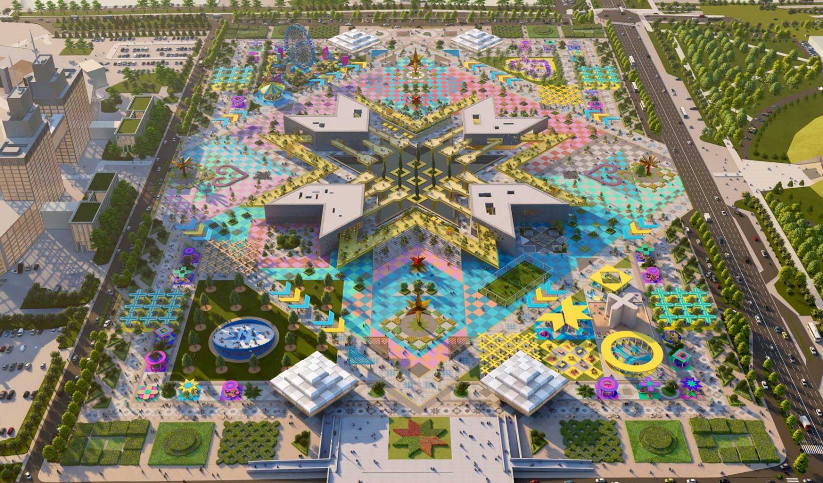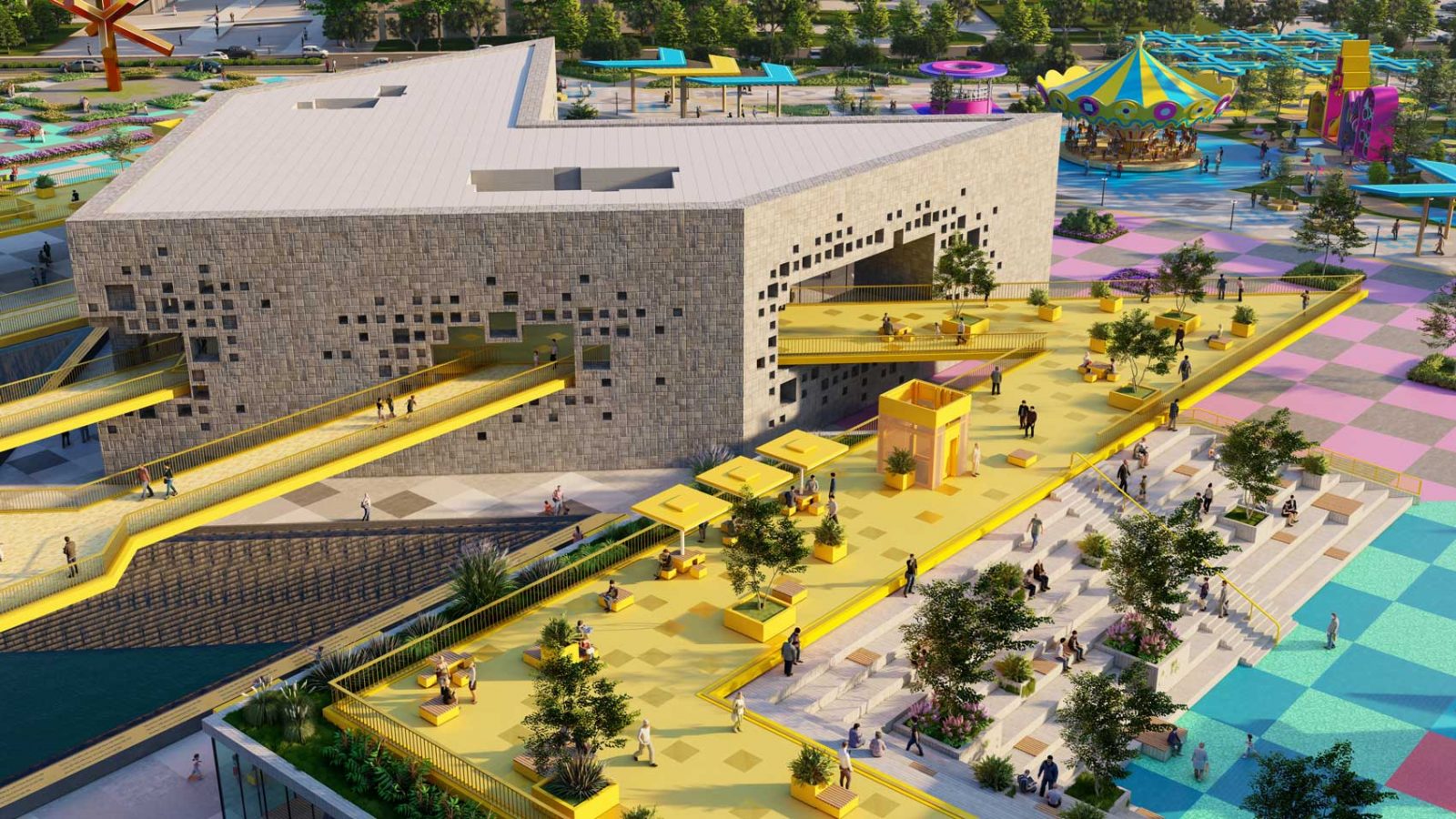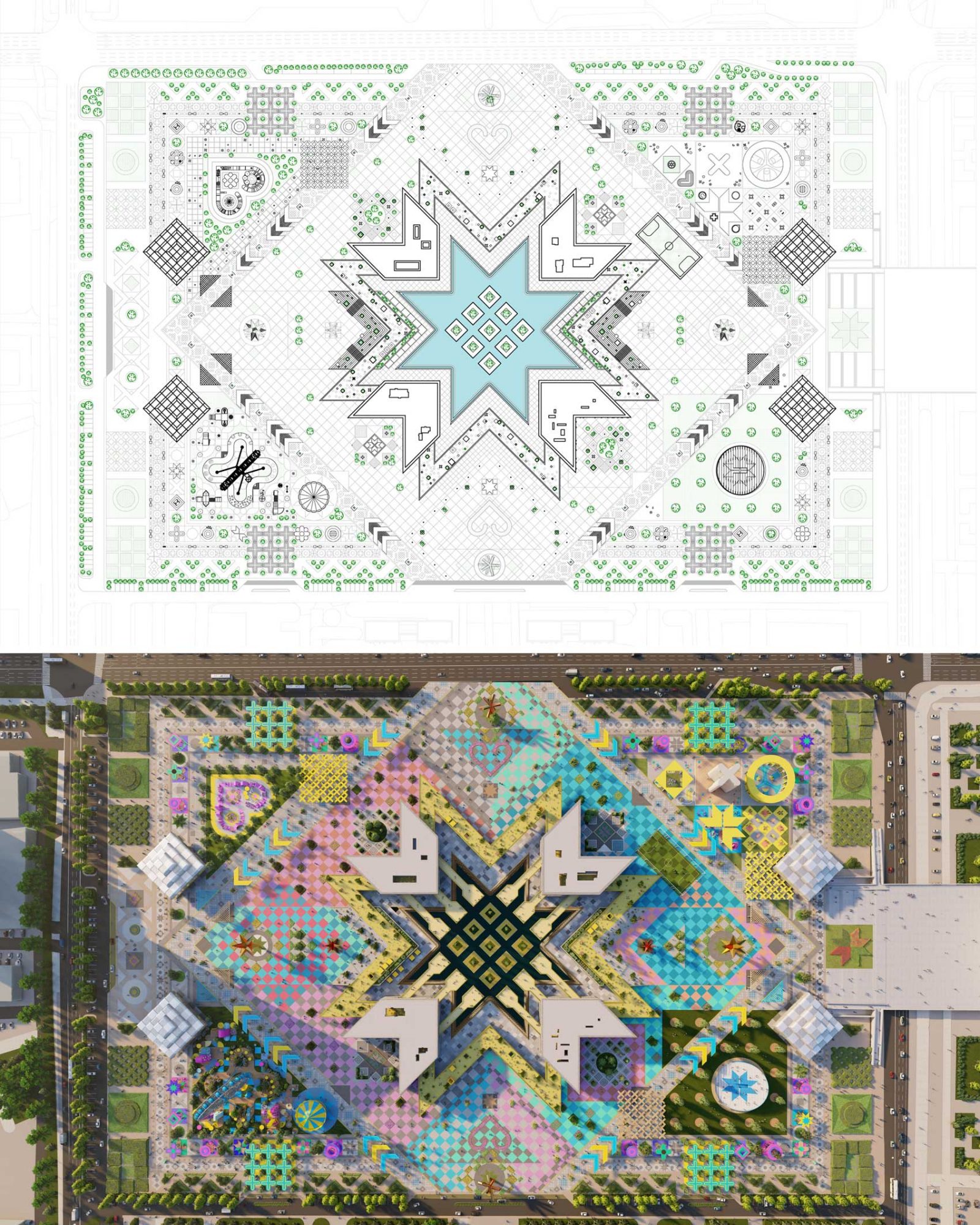 In the heart of Astana, Nomad’s Carpet emerges as a visionary public space and entertainment destination, inspired by the intricate carpets used by Kazakhstan’s nomadic tribes to decorate their yurts. Just like those handcrafted textiles, each knot and pattern becomes a colorful pixel with a purpose — from lush green areas and sports venues to playful spaces and cultural landmarks — woven together to form a bold, immersive urban tapestry.