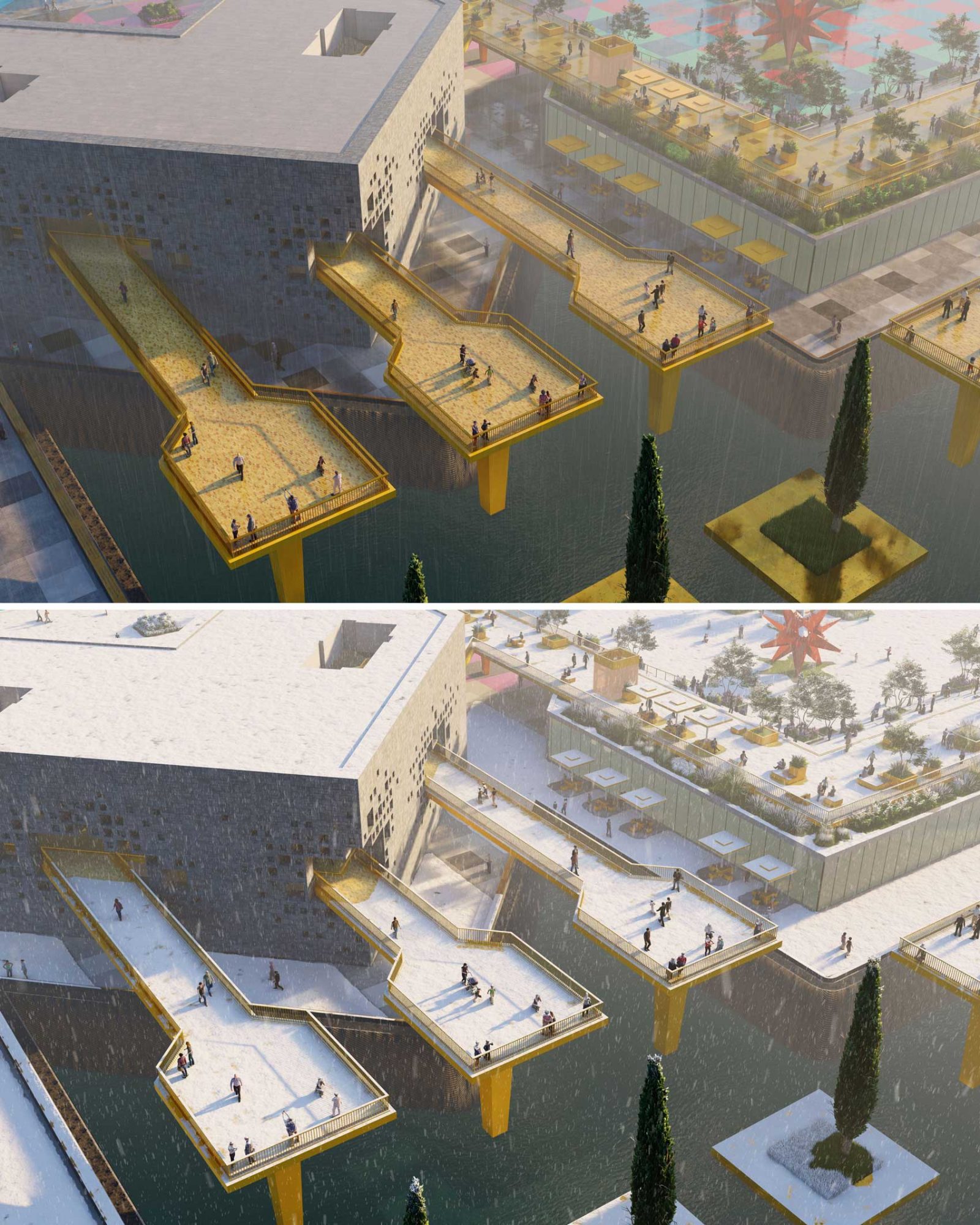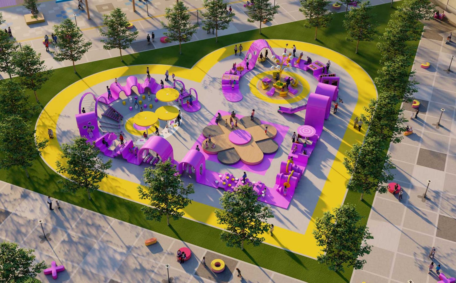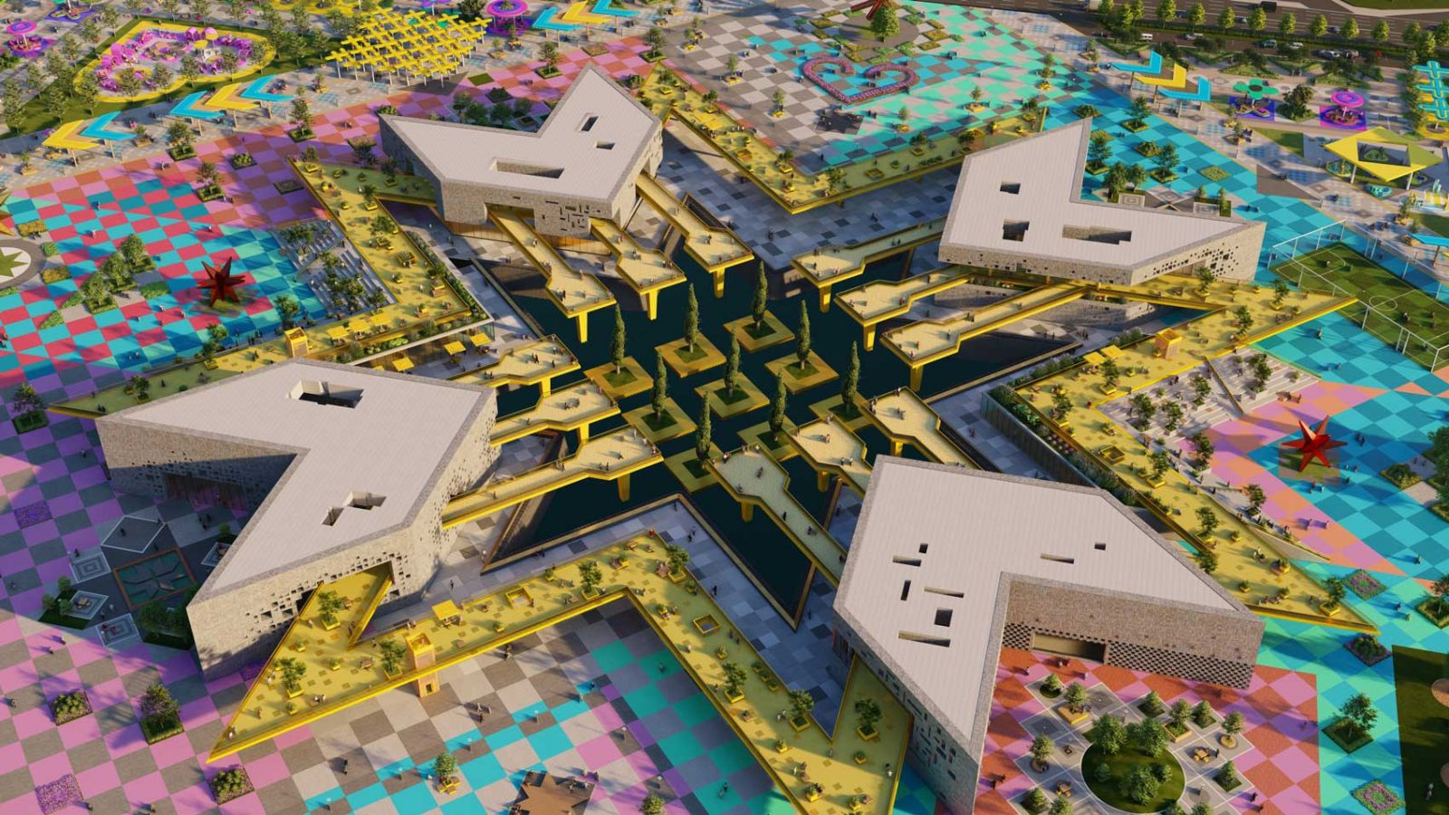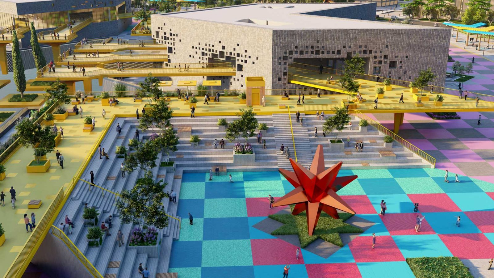 In the heart of Astana, Nomad’s Carpet emerges as a visionary public space and entertainment destination, inspired by the intricate carpets used by Kazakhstan’s nomadic tribes to decorate their yurts. Just like those handcrafted textiles, each knot and pattern becomes a colorful pixel with a purpose — from lush green areas and sports venues to playful spaces and cultural landmarks — woven together to form a bold, immersive urban tapestry.