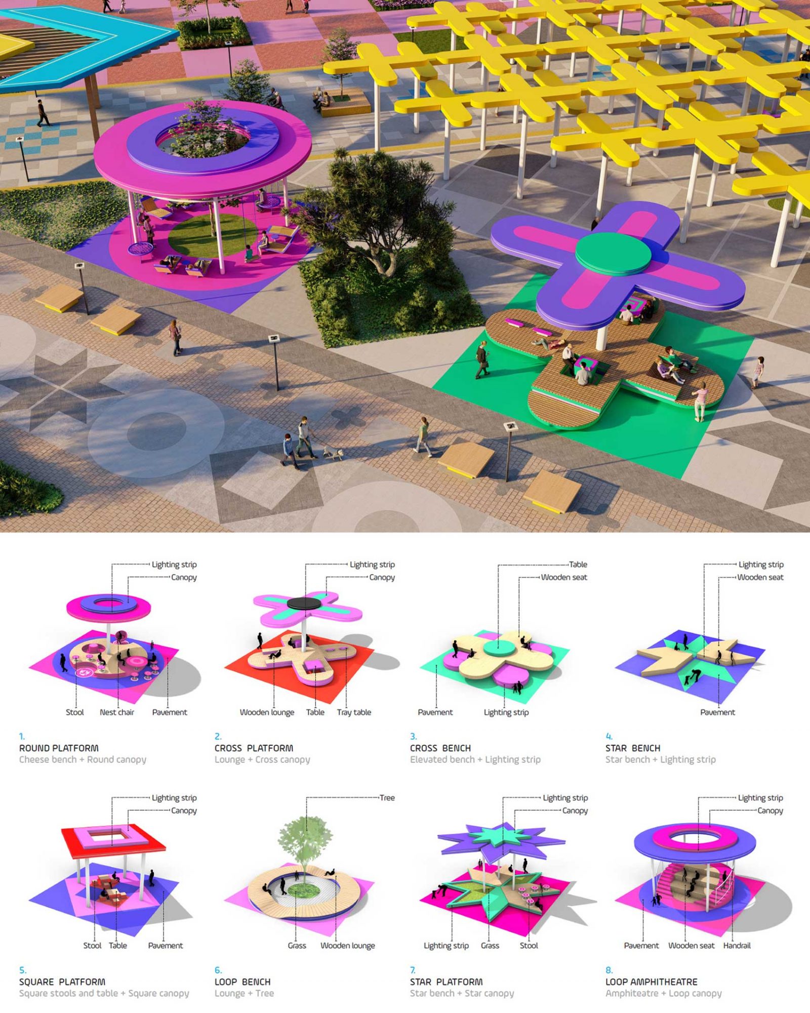 This typology is normally used by Municipalities & Local Governments to revitalize public spaces and establish a unique brand and identity for their cities, making them more functional, aesthetically pleasing, and engaging for the community, with innovative urban solutions that enhance the quality of life and promote economic development & tourism.