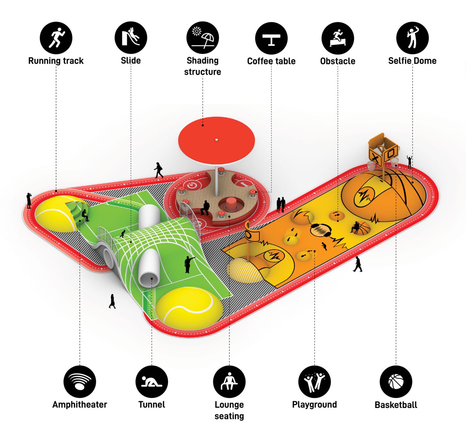 Understanding sports as a physical recreation, or any form of physical activity undertaken in leisure time for the sake of pleasure & entertainment, rather than high-performance sports facilities for only athletes, we believe that through recreational amenities in the Public Realm that go beyond the spatial norms of typical sports facilities, we can foster healthier lifestyles in a wider range of social groups.