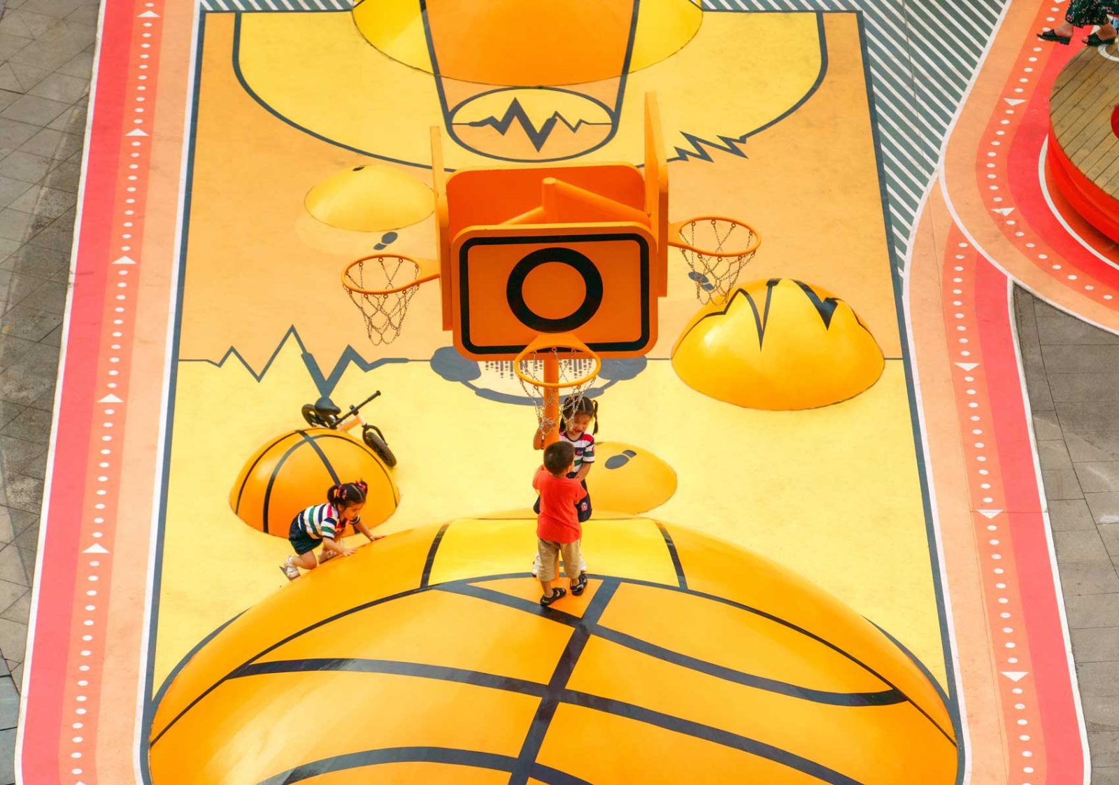 The project is composed of 2 surreal sports fields, Basketball & Tennis, in which users cannot strictly and officially play those sports, but instead, they can immerse themselves into a surreal themed play environment.
