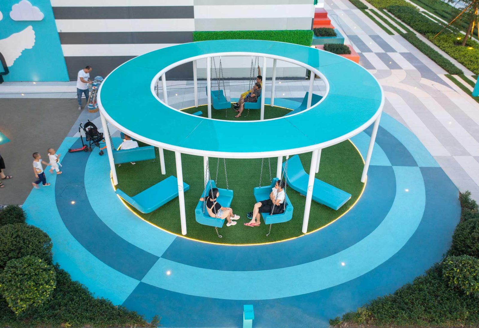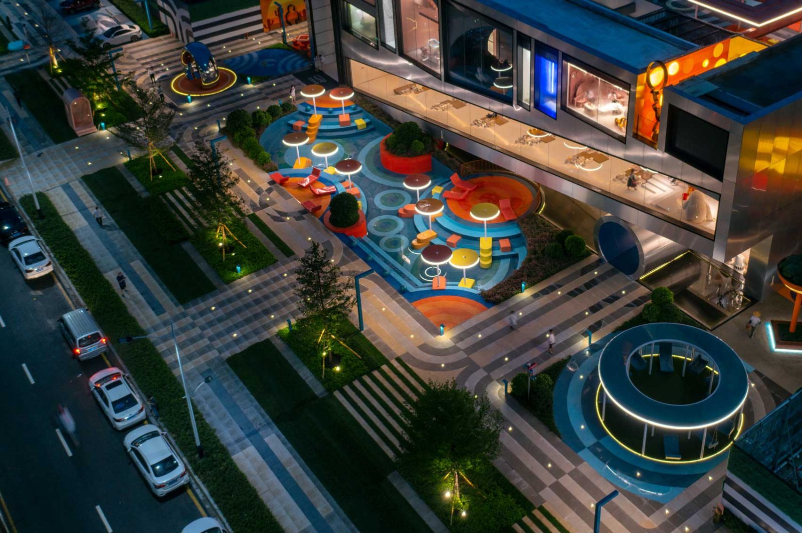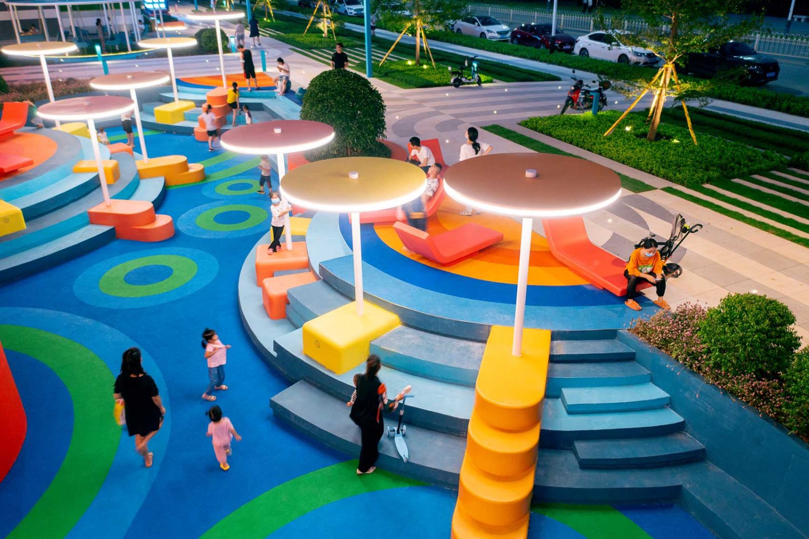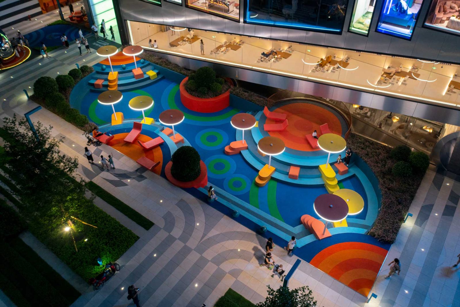 Urban Ripple is equipped with several sitting features, amphitheaters for gathering or public performances, lounge areas, stools & tables under canopies to rest under shadows, as well as playful and interactive features, offering joyful and entertainment spaces for all kind of age groups.