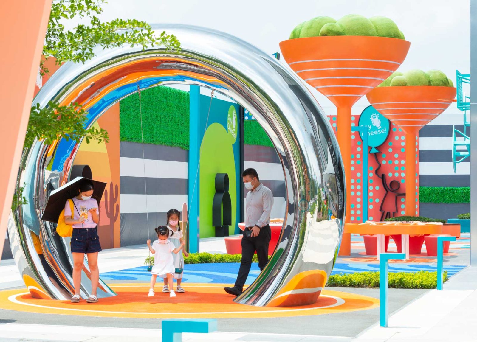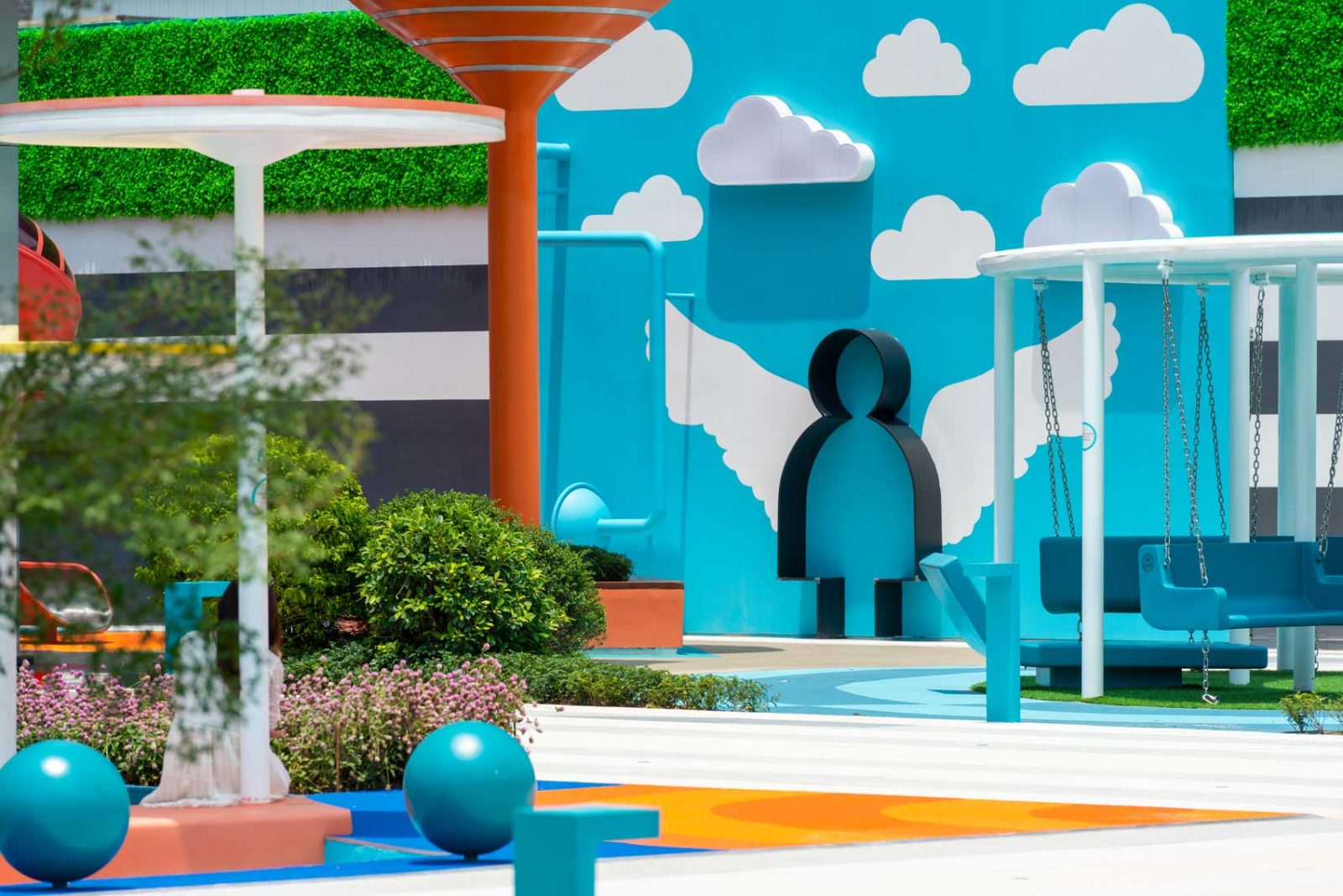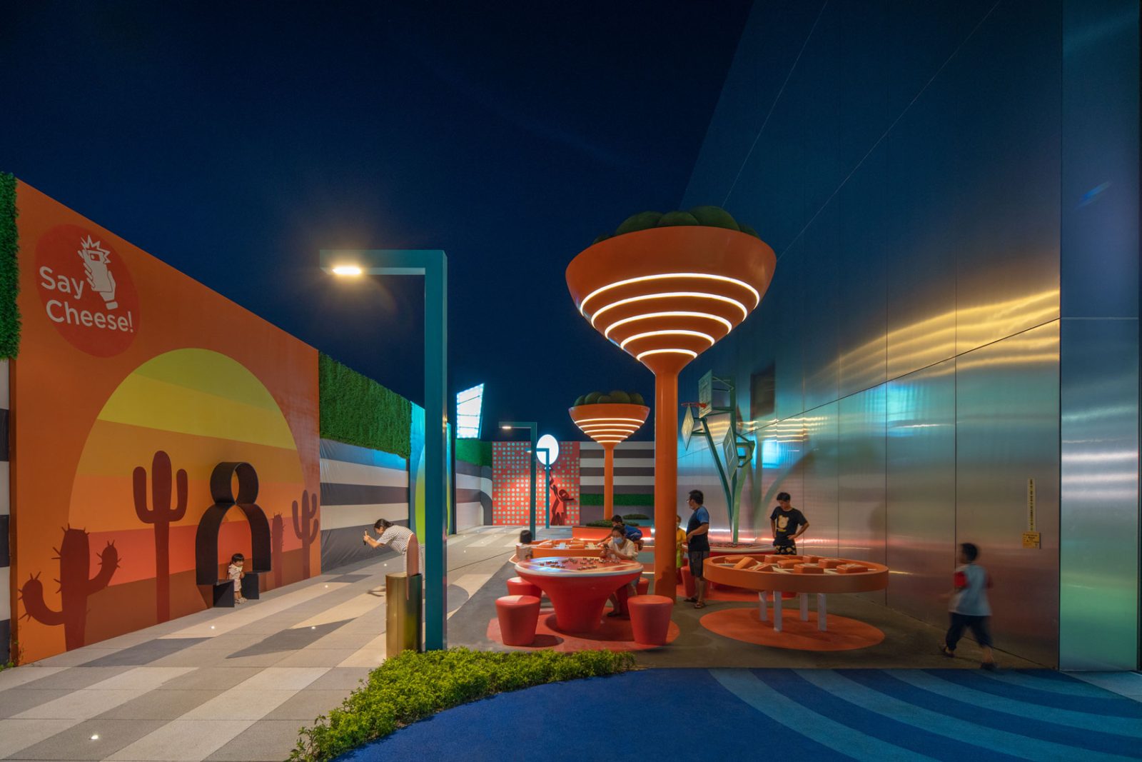 In order to follow up that narrative, 100architects was commissioned to design a very eye-catching, stimulating and multifunctional public space surrounding the building, aiming to boost the visitor experience before even entering the building. The hyper-stimulating space is permanently open to public, not only for the Exhibition Center’s visitors but any passerby since this area completely belongs to the public realm.